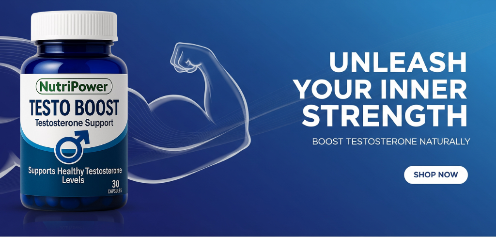 "Fuel your body with NutriPower Testo Boost. Formulated to maintain healthy testosterone levels, it helps you stay powerful, focused, and ready for anything. Just one capsule a day can make the difference!"